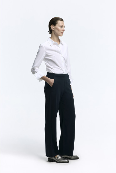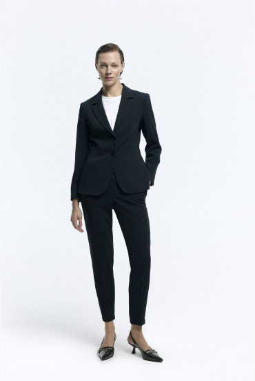 Liza a opté pour un magnifique style satiné avec un veston de couleur pêche. Une paire de jolies boucles d’oreille, un foulard et de belles chaussures, et le tour est joué ! Karoline a préféré un ensemble de ville bleu marine, qui peut se marier à la perfection avec tous les accessoires.