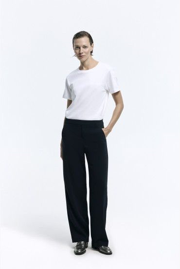 Liza a opté pour un magnifique style satiné avec un veston de couleur pêche. Une paire de jolies boucles d’oreille, un foulard et de belles chaussures, et le tour est joué ! Karoline a préféré un ensemble de ville bleu marine, qui peut se marier à la perfection avec tous les accessoires."